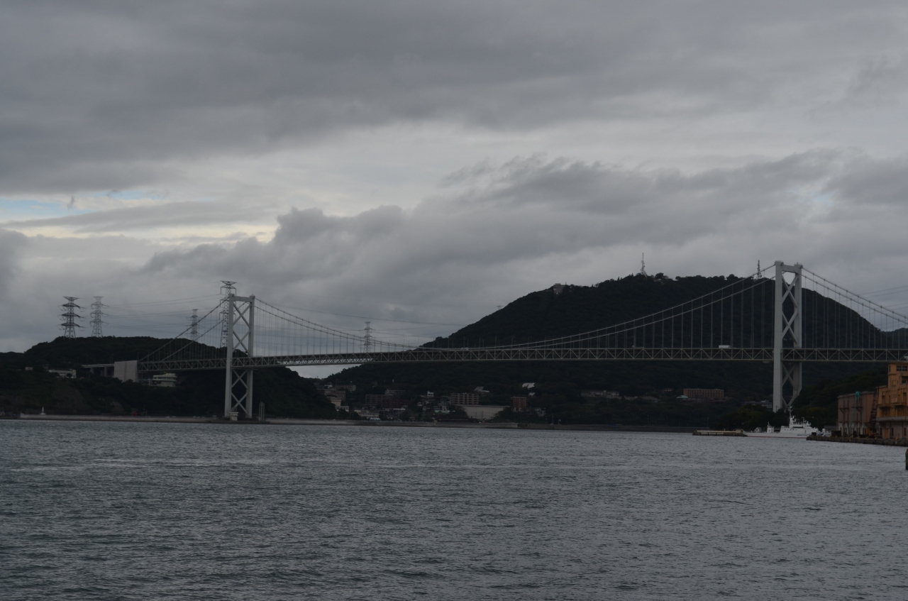 門司港に行った折、突堤から眺めました。狭い関門海峡ですが、間近で見る橋の眺めは絶景でした。門司港駅に近い九州旅客鉄道本社の早廻し動画で見ると、引っ切りなしに大型小型の船が行き交っています。交通の要衝だということが良くわかります。
