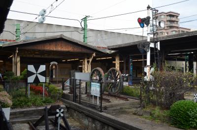 駅舎は大がかりな改修作業中で、この先何年もかかりそうです。工事中の様子が見学できる施設がありました。大陸航路があった時代の名残か、構内は広々としています。鹿児島線起点の里標があったり、人力車が置いてあったりして懐古趣味は満点です。