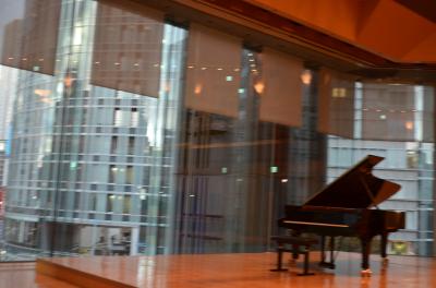 梅田駅・大坂駅から歩いて五分ちょっと、梅田新道交差点に接しています。二階席までありますが、客席は二百ほどでしょうか。舞台も小さいので、室内楽向けです。舞台後方は硝子張りで、開演までは外の景色も見えます。開演中は木製の反響板が降りてくる仕掛けです。休憩中に反響板を挙げると、梅田方面の夜景が見えます。