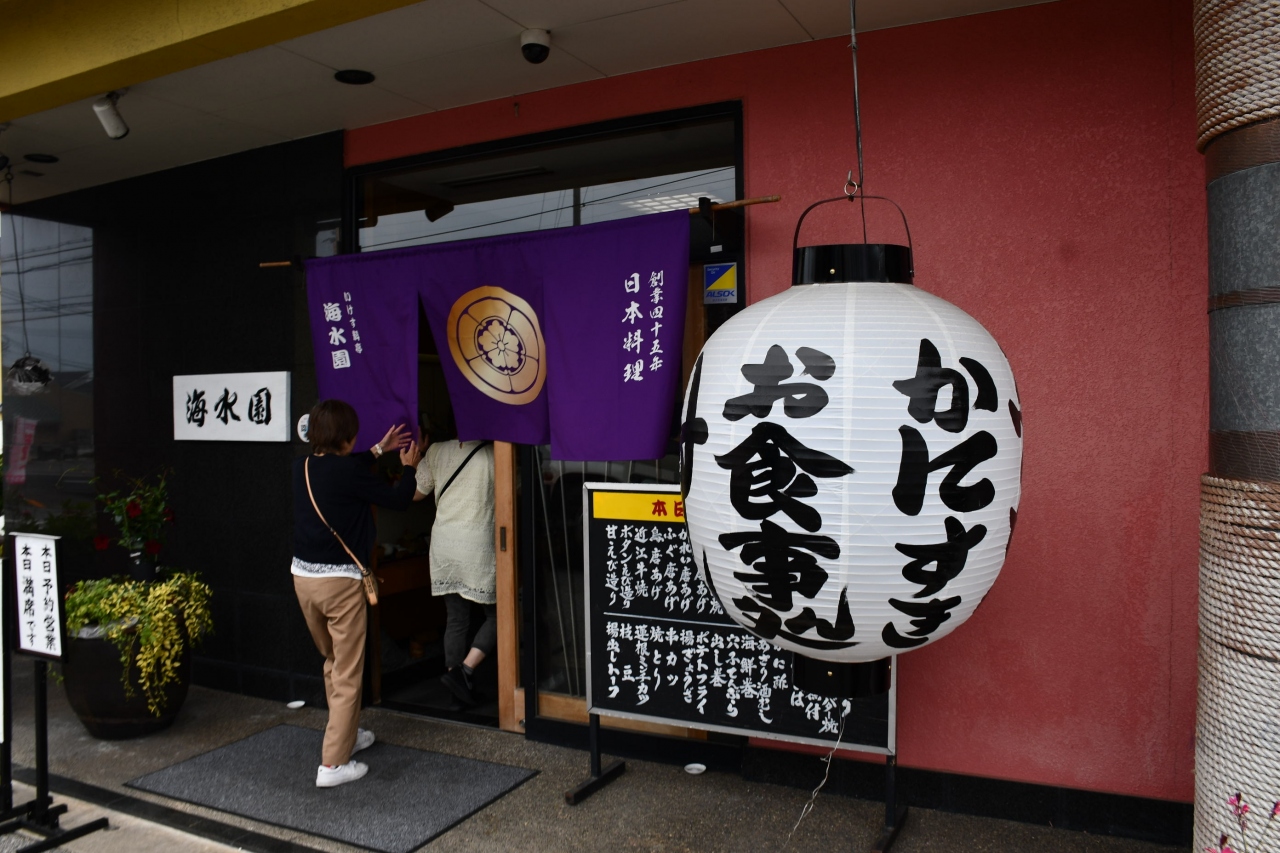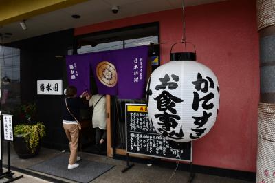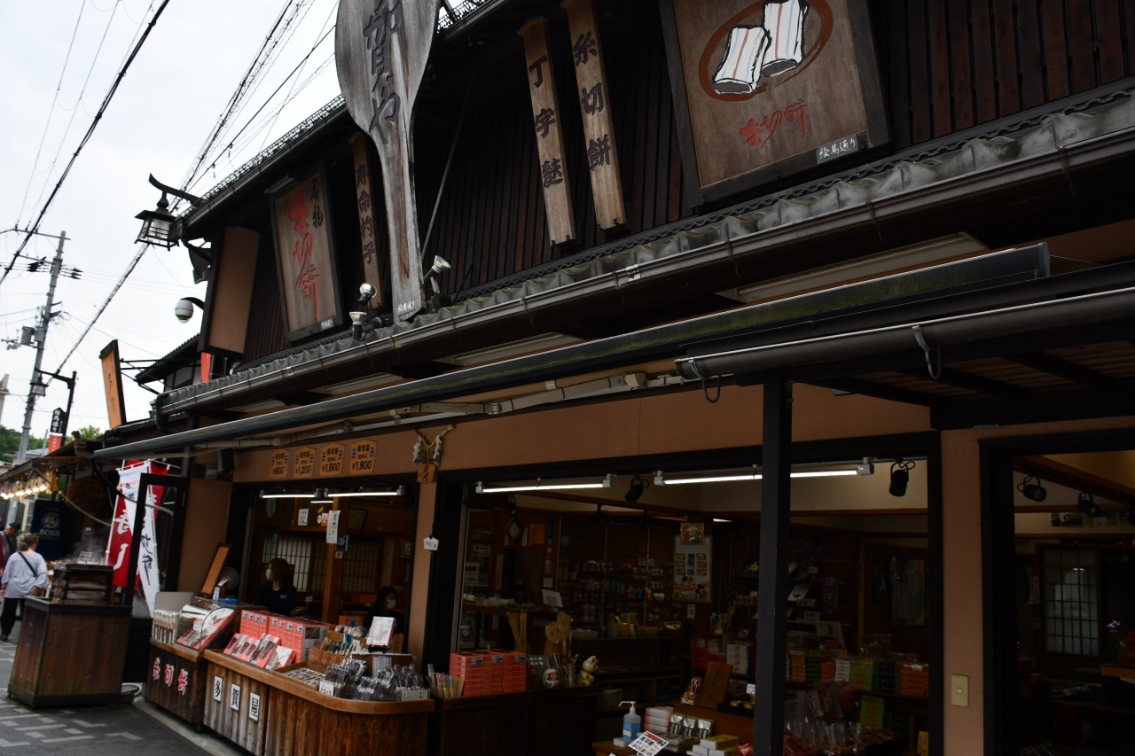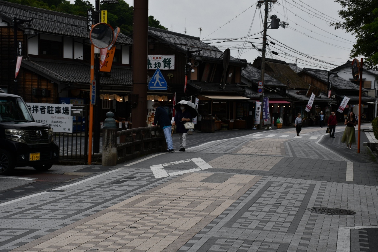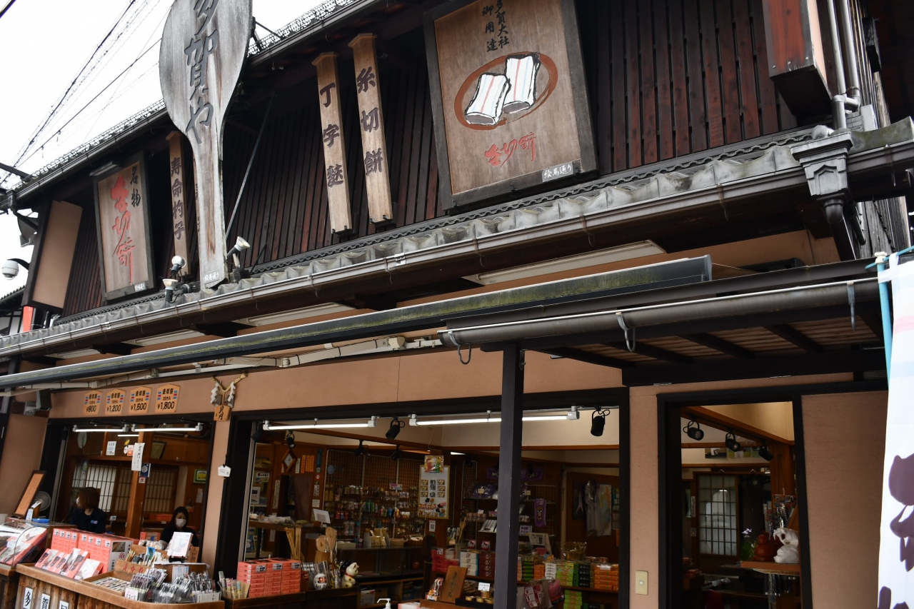 「多賀さん」と親しまれている多賀大社、門前町は「絵馬通り」呼ばれており、お土産物屋さんが軒を連ねています。多賀さんの杓文字を象った大きな看板が目立ちます。お店の中には、国の有形文化財に登録されているという歴史的な建物もあります。