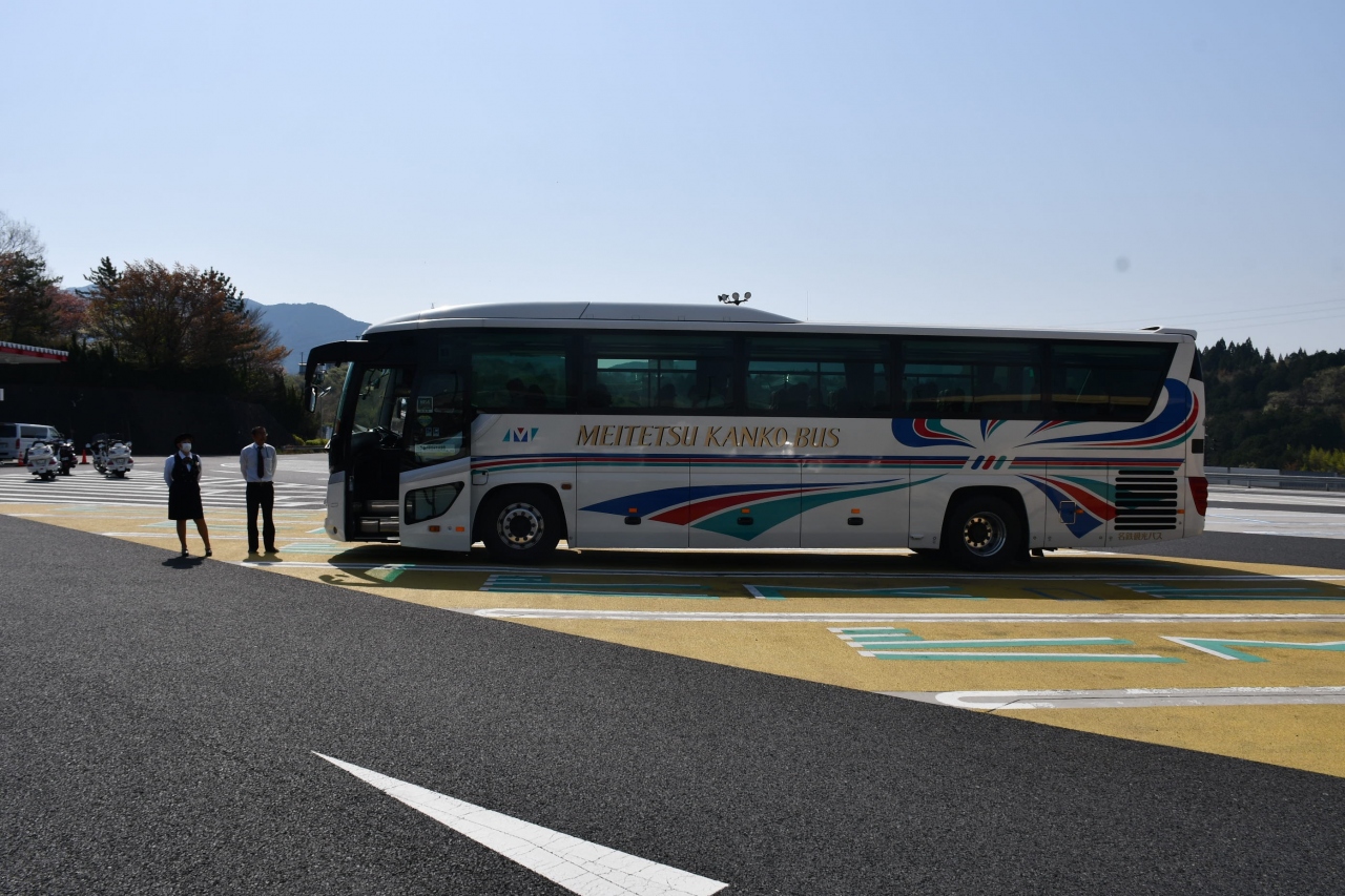 名古屋から信州への日帰り旅行で、中央自動車道の休憩所を利用しました。美濃国から信州にかけては山々が連なっており、国境を越えると景色も違ったように見えました。信州は桜が満開になったところで、見頃でした。