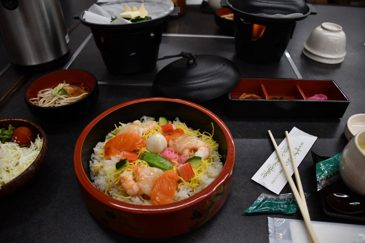 蛍烏賊などで知られる富山は、海の幸に恵まれています。町中、どのお店でも新鮮な海の幸に出会うことができそうです。宿の朝食でも蛍烏賊がありました。以前は、鱒鮨が付いていたこともありました。加賀百万石と言いますが、これは前田家が領した能登と越中を併せての計算で、越中一国で八十万石でした。