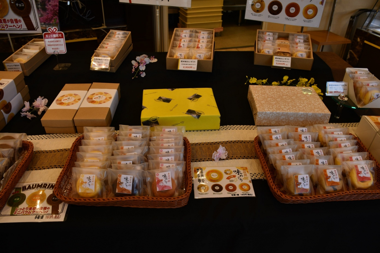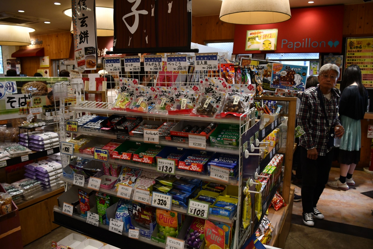 信州にある、北川製菓の工場直営店です。横文字は、北川の仏蘭西語訳です。出来たてのお菓子類が店頭に並んでいます。周辺のお土産物屋さんに出荷されています。店先からは、雪を戴いた駒ヶ岳を見ることができます。信州は自然に恵まれています。