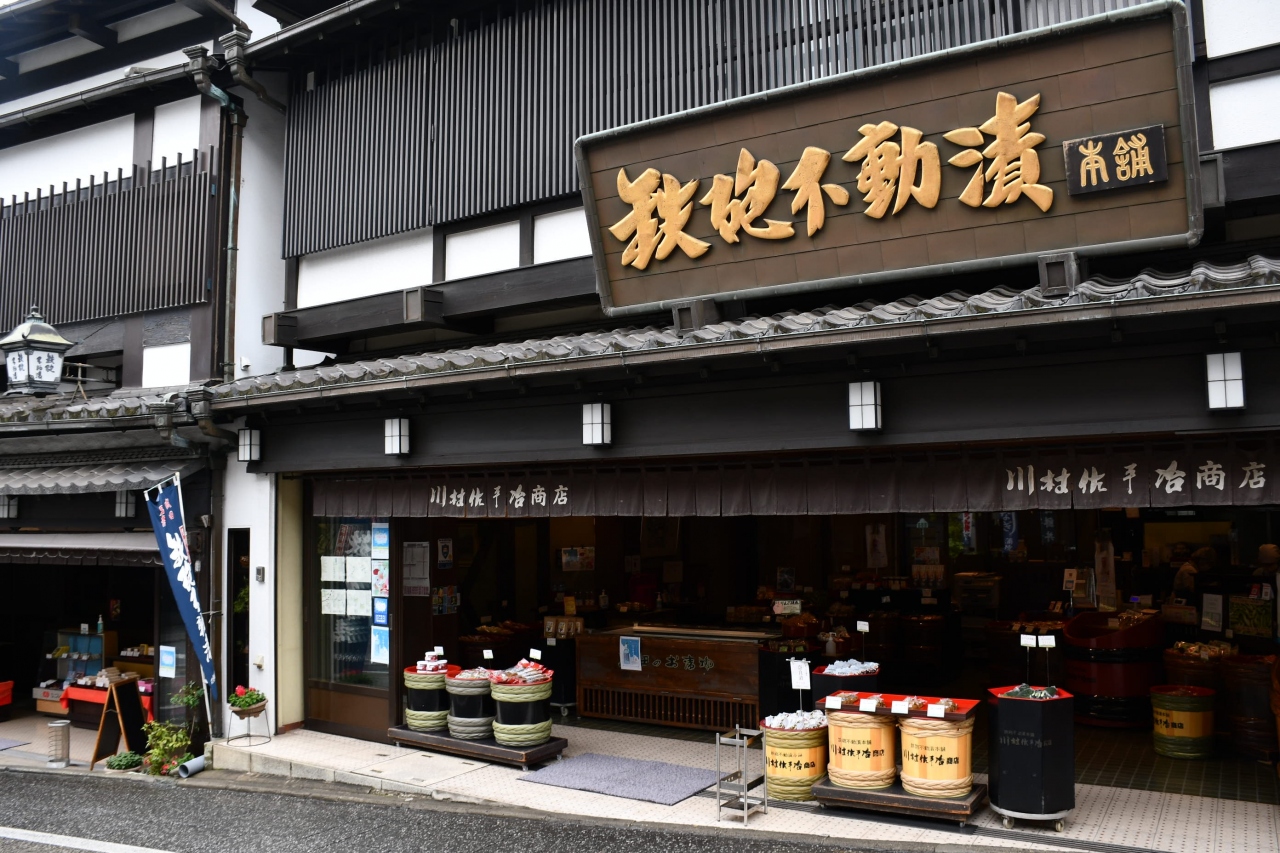 成田山参道にあるお土産物屋さんです。商店街は、名物の鰻を店頭で捌いていたり、香ばしい煙が周囲一面に漂っていたりと、独特の雰囲気があります。お土産物としては、特産の落花生や鉄砲漬け、味噌などより取り見取りです。