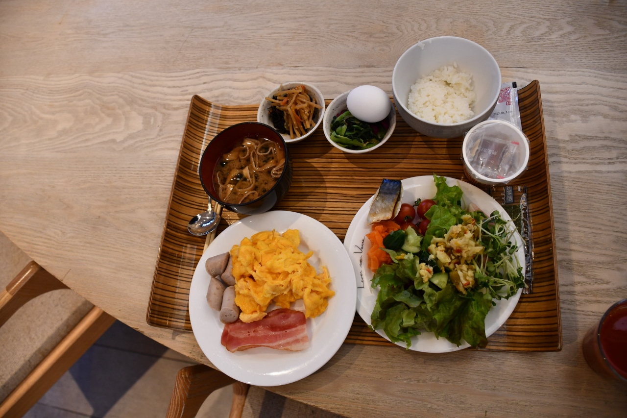この系列は、どことも駅前の一等地にあって目立つので、水戸もそうだと考えていました。ところが、北口の広場に出ても見当たりません。それもそのはず、線路沿いの、細い路地の先にありました。朝食は館内ではなく別棟で、駅中のお店でというのも驚きでした。