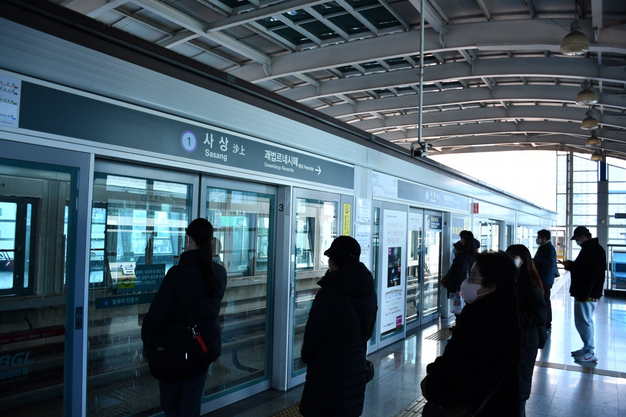 釜山の玄関口、金海国際空港です。市内に出るには、無人運転の新交通で沙上に出て、地下鉄に乗り換えます。切符もその都度買う必要があって、ちょっと不便です。長距離便が多い仁川とは違い、日本との短距離便が中心で、それなりの規模です。