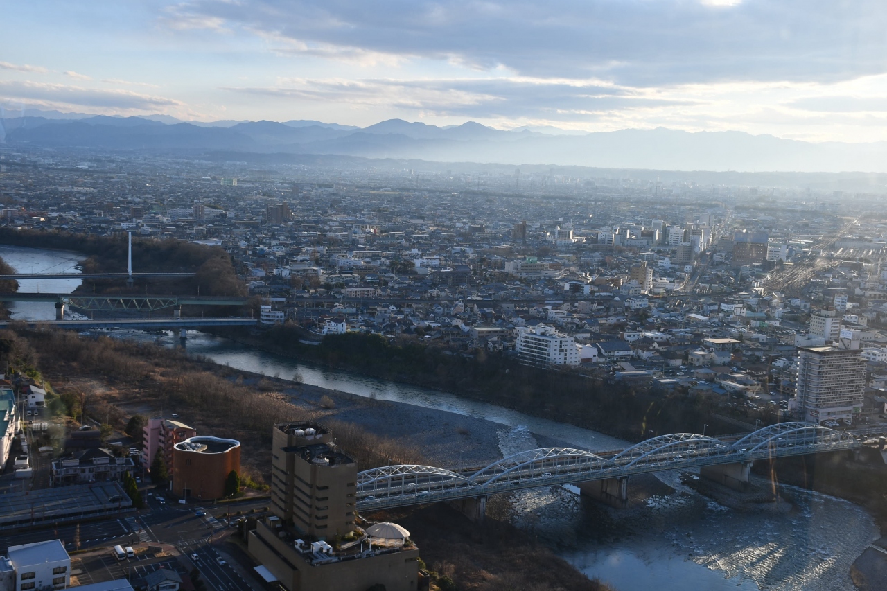 新幹線が通っていて、県庁所在地に駅がないのは五道県です。群馬はその一つです。新前橋で上越線が分岐し、そこから先は小山まで両毛線です。前橋駅周辺は、三十二階建ての県庁が目立つのみで、夕食のお店を探すのにも苦労しました。宿で自転車を借りて市内観光しました。