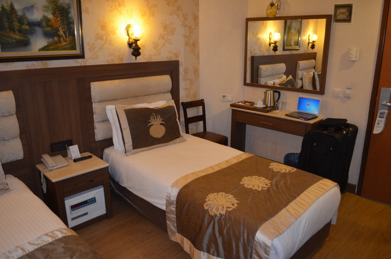 イェニカプ駅に隣接と言えるほどの場所にあります。この駅は地下鉄のアタテュルク空港から直通ですので、便利です。部屋は狭く、小さな窓は見通しが全く利かなかったというのが難点です。こんなに見通しの悪い部屋は、滅多にあるものではありません。防音もお粗末で、廊下の物音が丸聞こえでした。朝五時着の飛行機で宿に着いたのが七時頃でしたが、すぐに部屋に通して貰ったのは助かりました。朝食は、料理の種類がまずまずで満足できる水準でした。