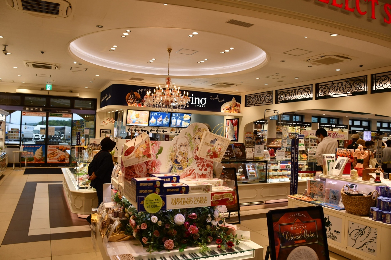新名神の宝塚北休憩所は、西日本で最大級という触れ込みです。上下線両方から利用できるように設計されています。開業してから四,五年という新しさ故でもありましょう。建物の外観は、宝塚大劇場を模しているそうで、店作りもそれらしくしてあります。