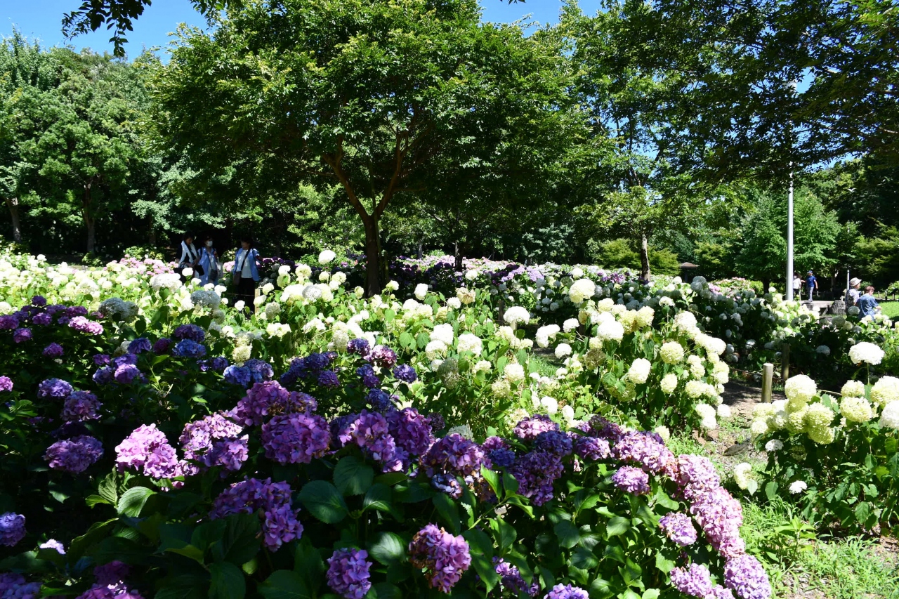 地車祭で有名な岸和田に、蜻蛉池公園という紫陽花の名所があります。今年の梅雨は例年より短いような感触でしたが、それでも紫陽花は時期相応に華麗な花を咲かせてくれました。併設の薔薇園は、見頃を過ぎていたようです。