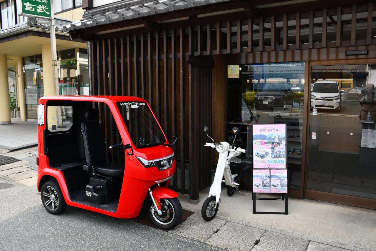 山陰線の城崎温泉駅前にある観光案内所です。貸し自転車だけではなく、三人乗りの電気自動車も置いてありました。城崎と言えば外湯巡りですが、街なかに散在しているので、地図が必須でしょう。外湯巡りは、七箇所あります。