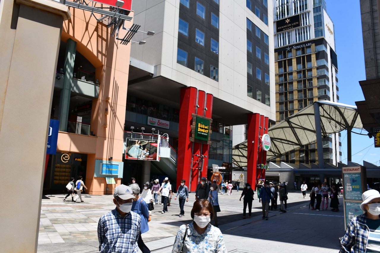 感染症対策とやらで外出自粛も一段落、人出が戻ってきました。今や、浪速で一番の観光案内所と言えるでしょう。特に、若い世代が押しかけているのが目立ちます。交通の便としては、環状線直通の電車が頻発しています。