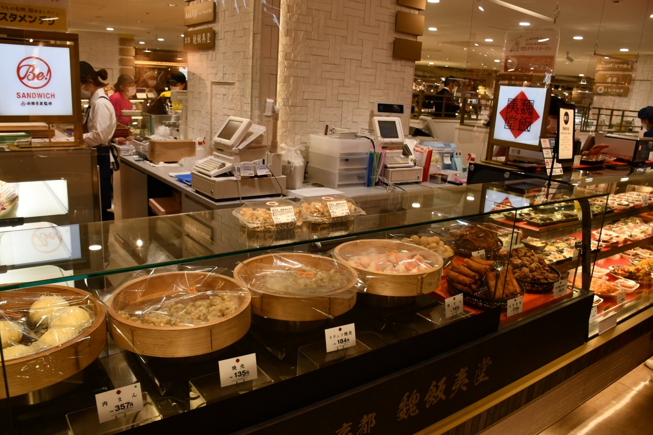 阪神百貨店地下にあるお惣菜屋さんです。阪神百貨店本店は長年の改装が完工して、売り物であった食料品売り場が充実しました。和洋菓子など甘いものが多い中で、お惣菜屋さんは貴重です。近くで食べる場所を探すのが難しいかも知れません。