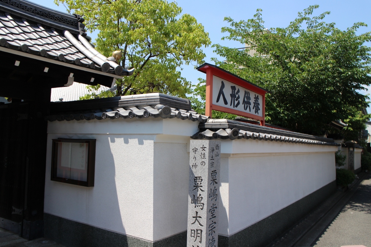 京都駅八条口から東寺道を西に進むと、人形供養の粟嶋堂様があります。長年慈しんできた人形さんを大事に供養するために、お堂が設けてあります。大宮通を過ぎると、広い梅小路公園です。水族館や鉄道博物館があって、一大観光地です。