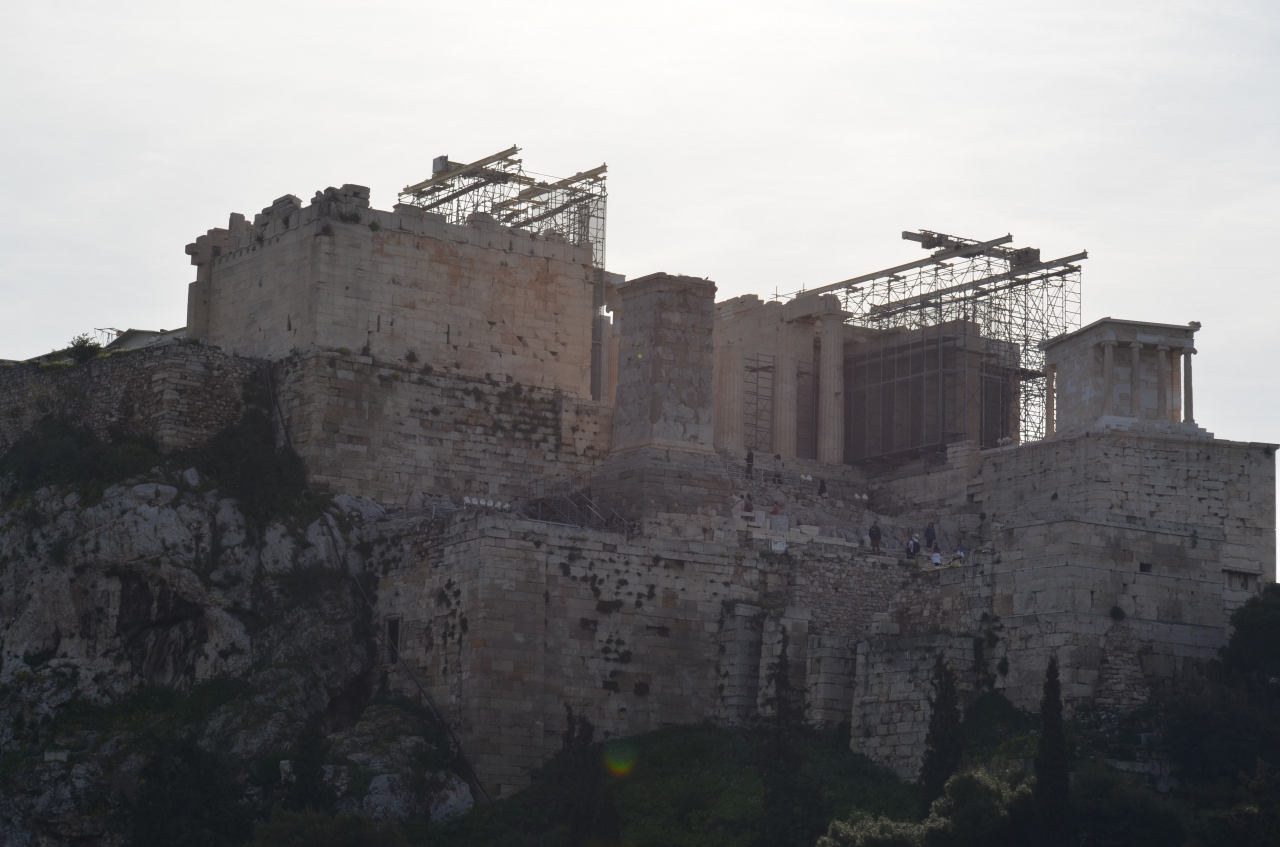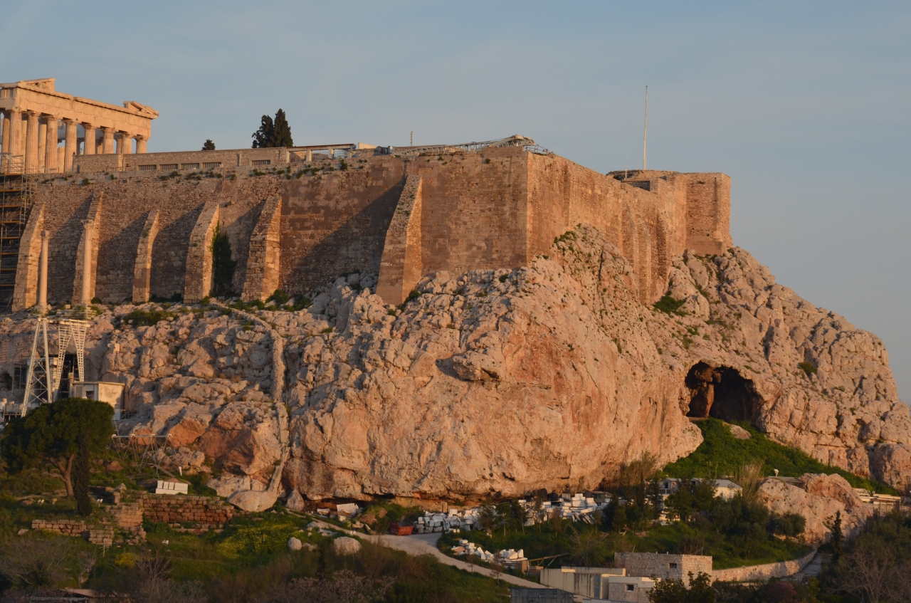 四半世紀ぶりのアテネ訪問でした。宿を、アクロポリスとゼウス神殿遺跡の間という場所に取りました。部屋のバルコニーからはゼウス神殿の列柱を眺め、最上階の朝食会場からはパルテノン神殿が真っ正面に見えるというので、市内観光を済ませた気分になってしまいそうでした。宿の立地は、市内観光にとって大事な選択肢です。