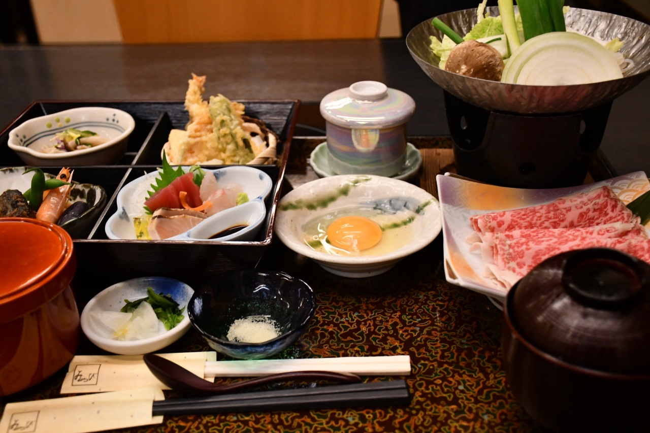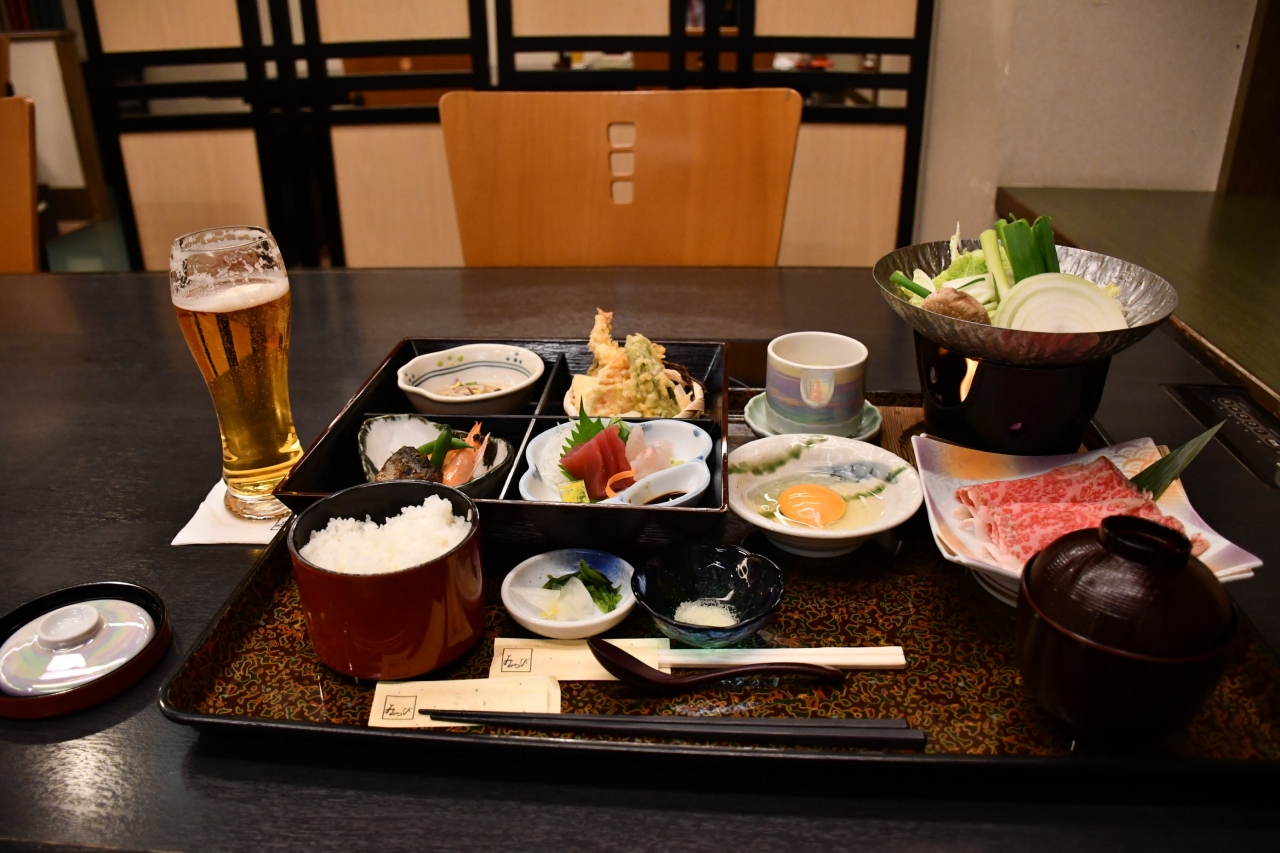 真宗高田派のご本山、専修寺様を参詣のために津に泊まりました。この宿は津駅から歩いて一分、二階の改札口から回廊で繋がっています。部屋は十五平米でまずまずの広さでした。二食付きで、晩御膳は松阪牛のすき焼きで大満足でした。