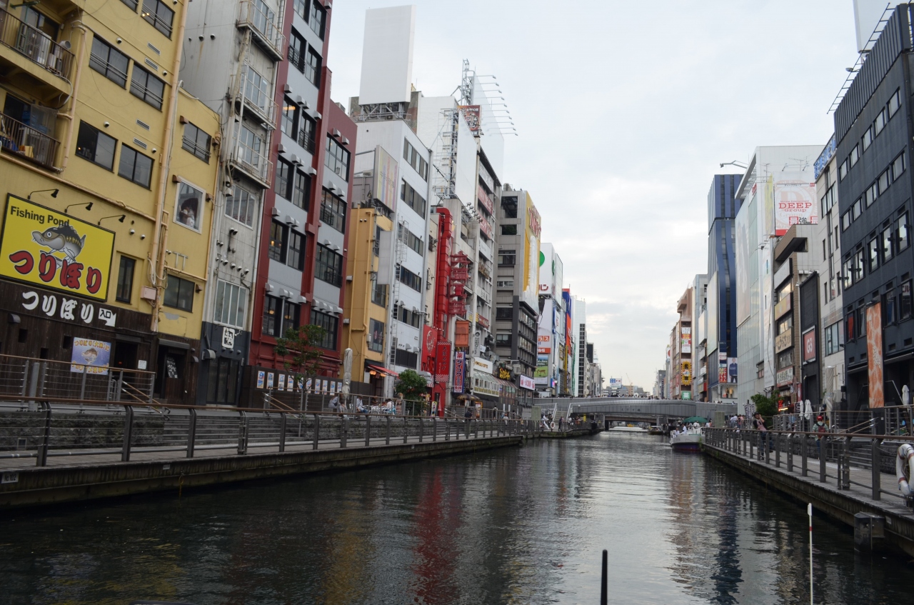 南海電鉄難波駅方面から戎橋筋を通ってこの橋を渡ると、島之内に入ります。心斎橋筋にかけて、外国人観光客が多い折は人ごみを掻き分けるような人通りでした。橋の南側は松竹座など、五座の櫓の名残で芝居街という情緒が残っています。