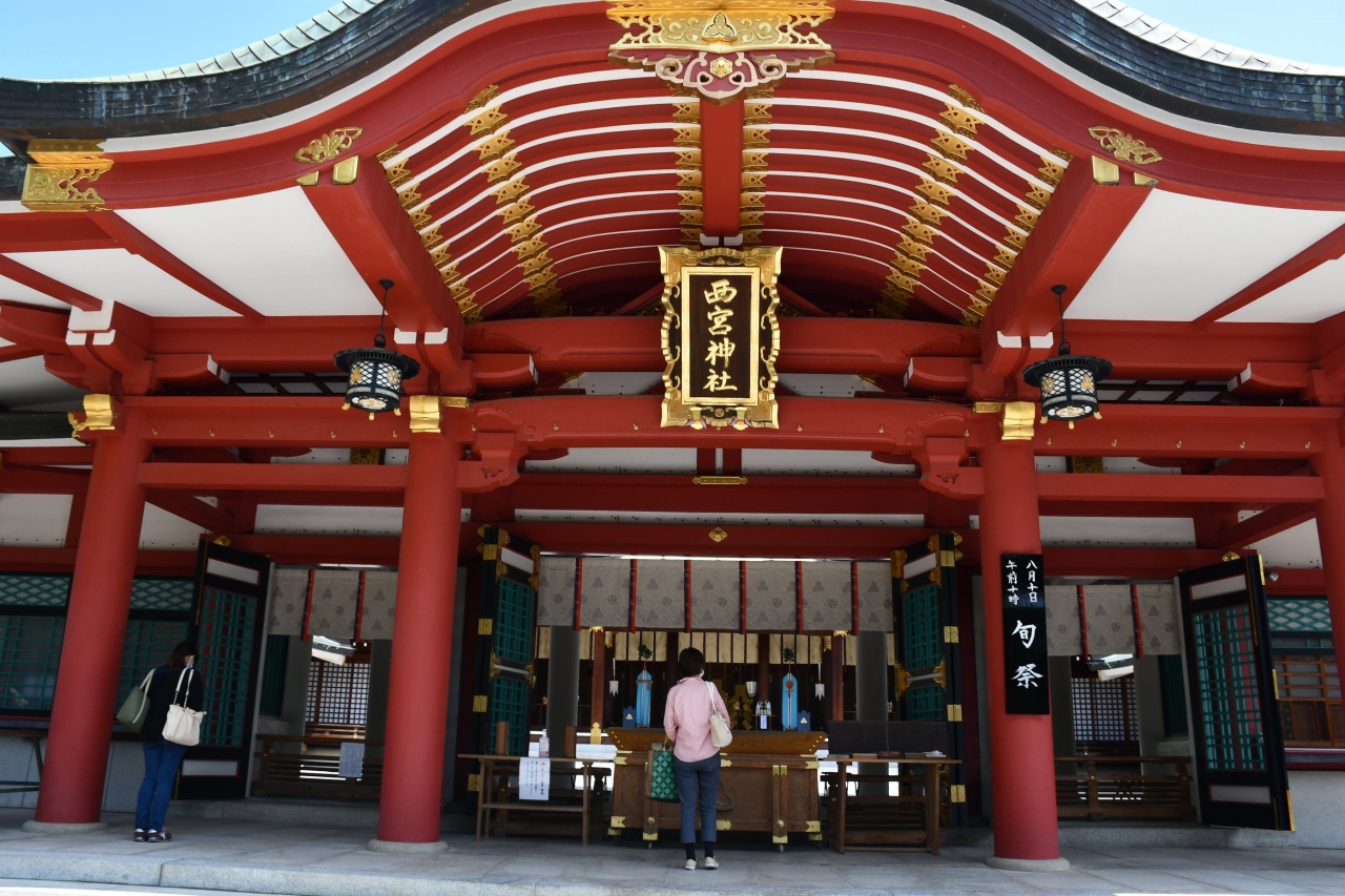 日本全国のえべっさんの総元締めです。そもそも戎神とは、ここ西宮神社のご本尊である蛭子命のことです。七福神のうちでは、えべっさんだけが日本の神様です。ここ西宮神社は、お正月に開門と同時に本殿までの競走で福男を決します。