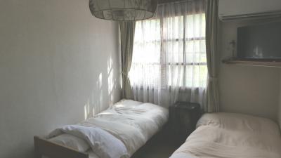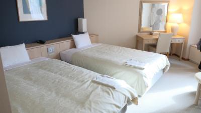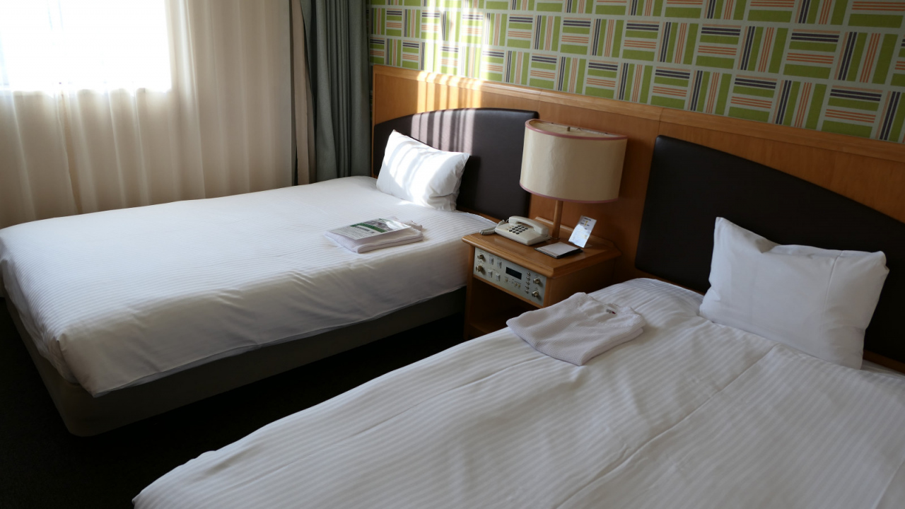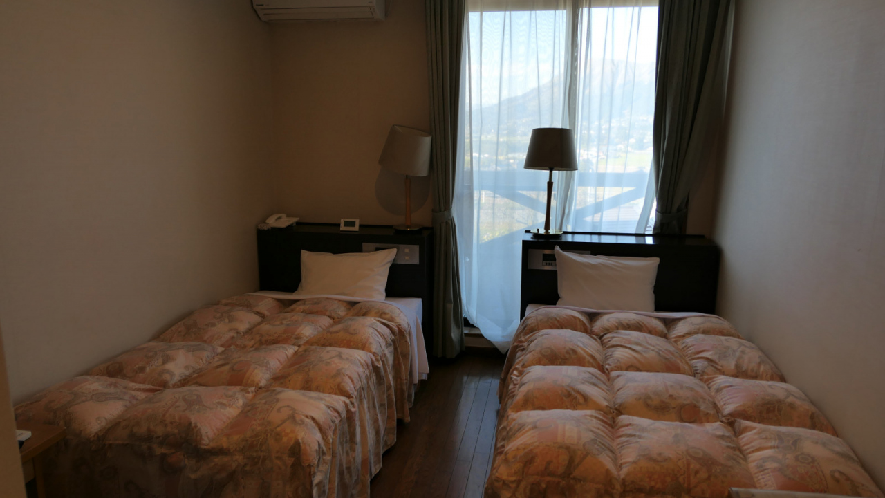 和室もあるようですが、通されたのは洋室ツイン。2人で使うには狭いです。