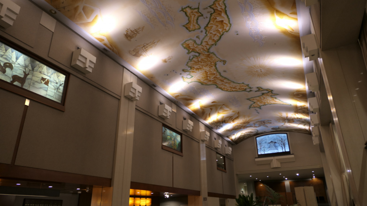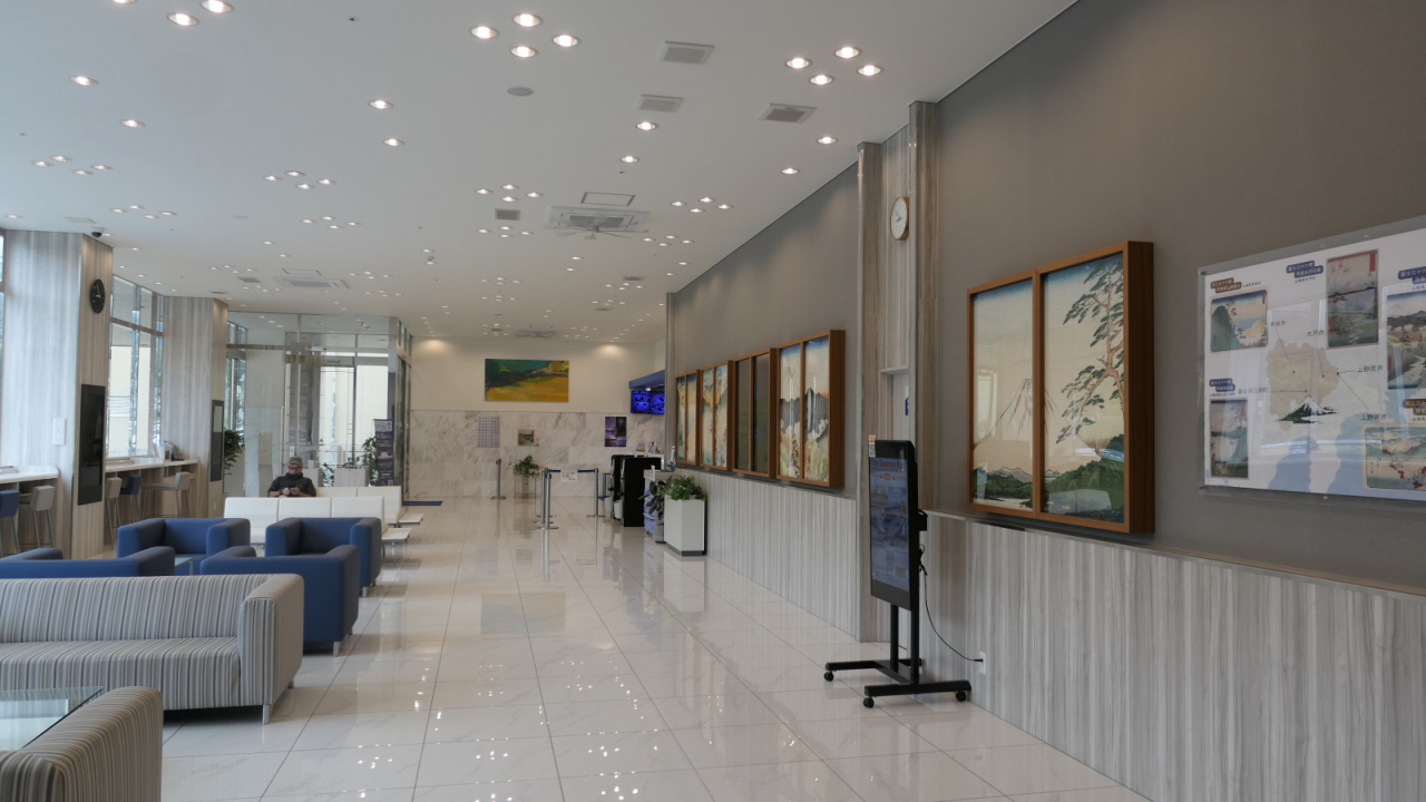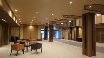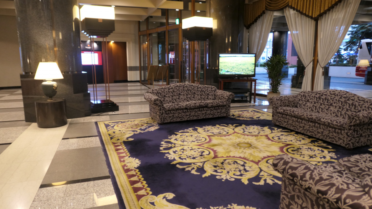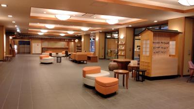 駐車場も広く、外観はゆったりした雰囲気です。宿泊料金はそれなりに高額ですが、館内は意外にあっさりで高級感や洒落た印象はあまりなく、公共の会館やホールといった風情です。