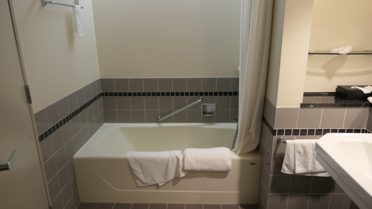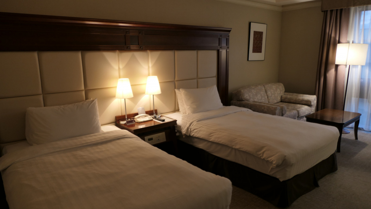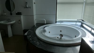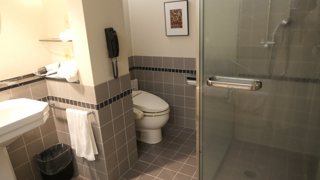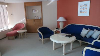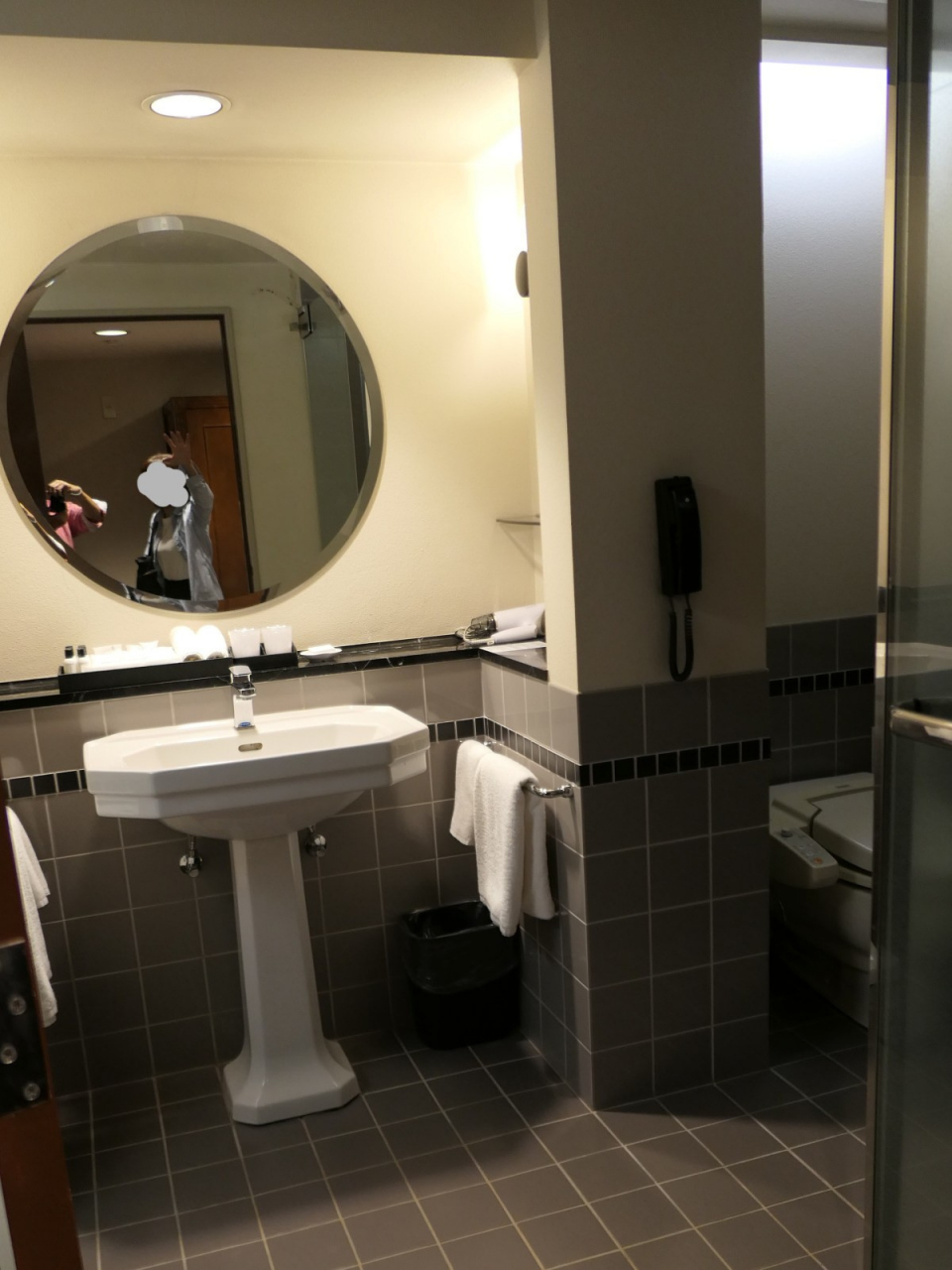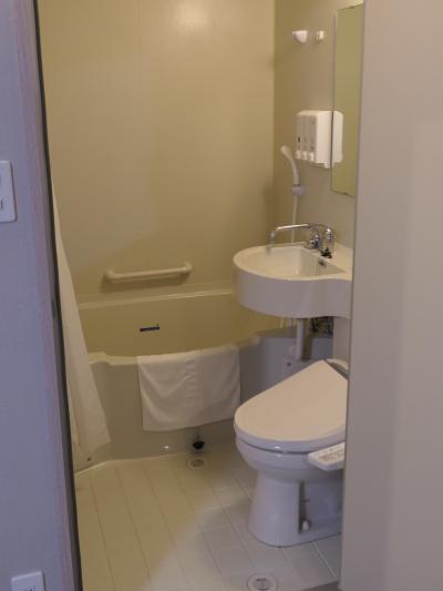 客室も広いのですが、やや古さが目立ちます。バスルームは広いのですが、洗面台・トイレが一緒にあるので、結局ビジネスホテルと同じという不思議なつくり。