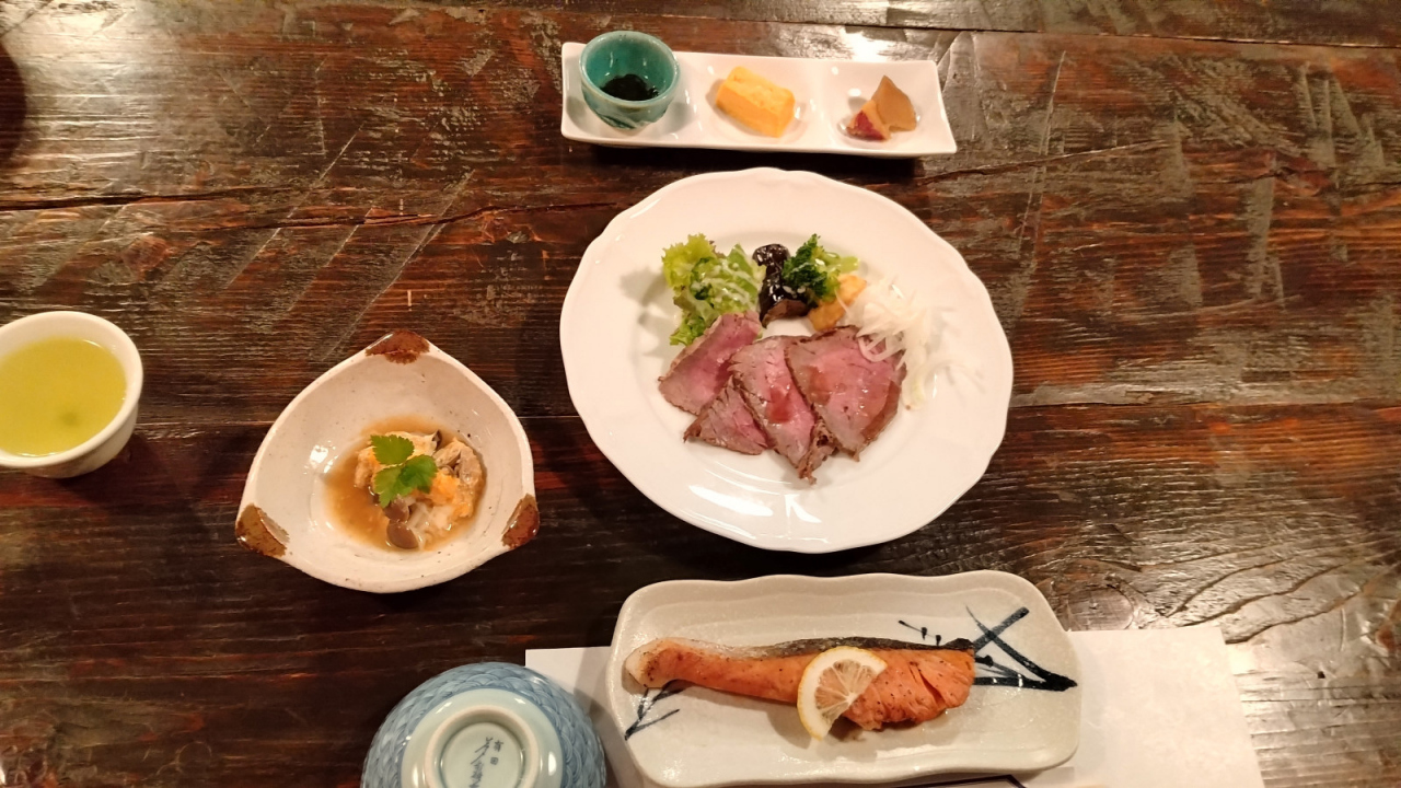 朝食は可もなく不可もなく。周辺に飲食店もコンビニもないので、食事なしだとクルマは必須です。