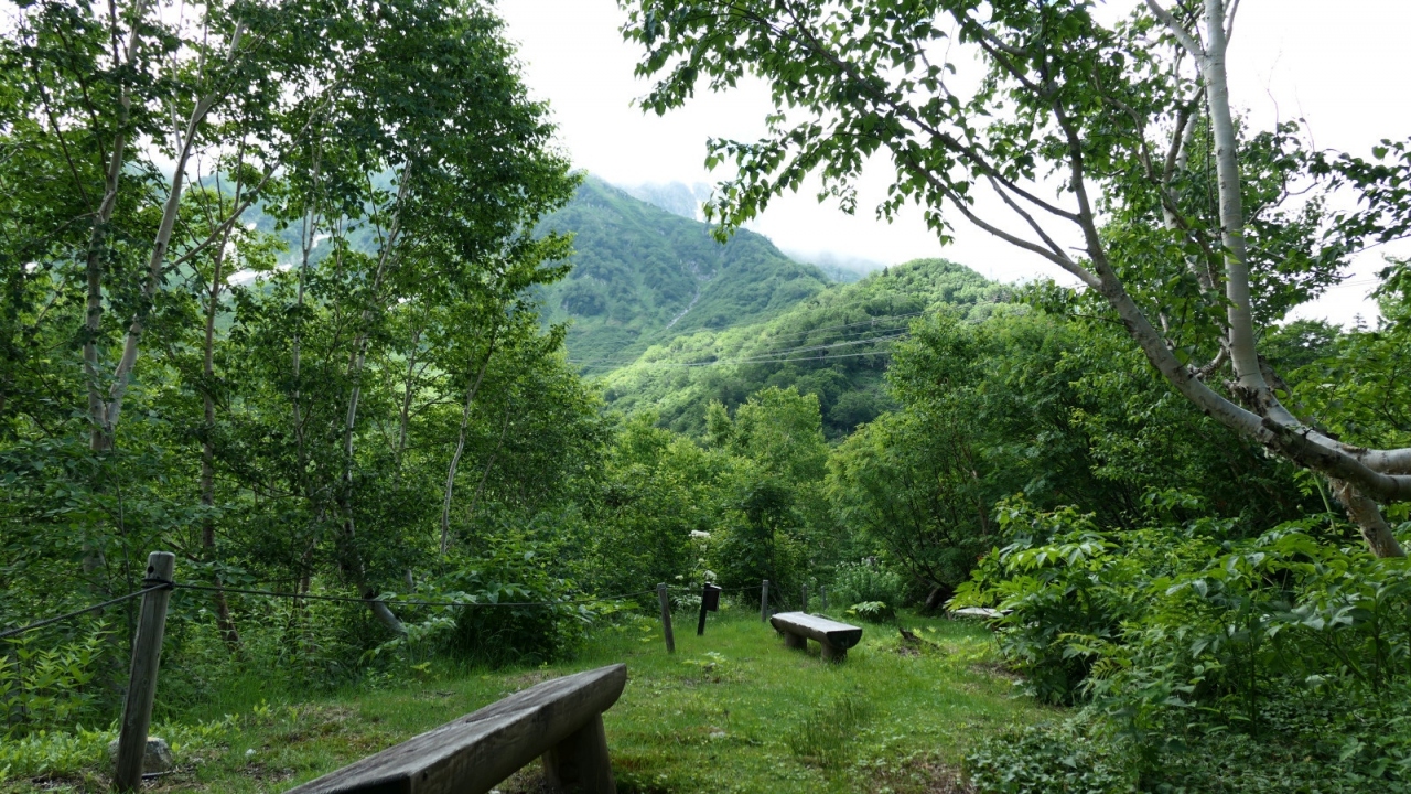 さすがにここまで来ると深い山の中という印象ですが、小屋の前は視界が大きく開けた湿原になっており、閉塞感はありません。