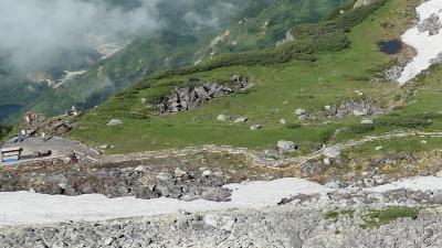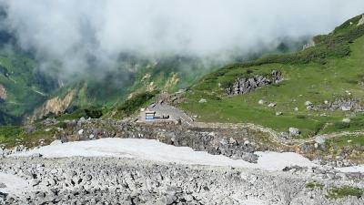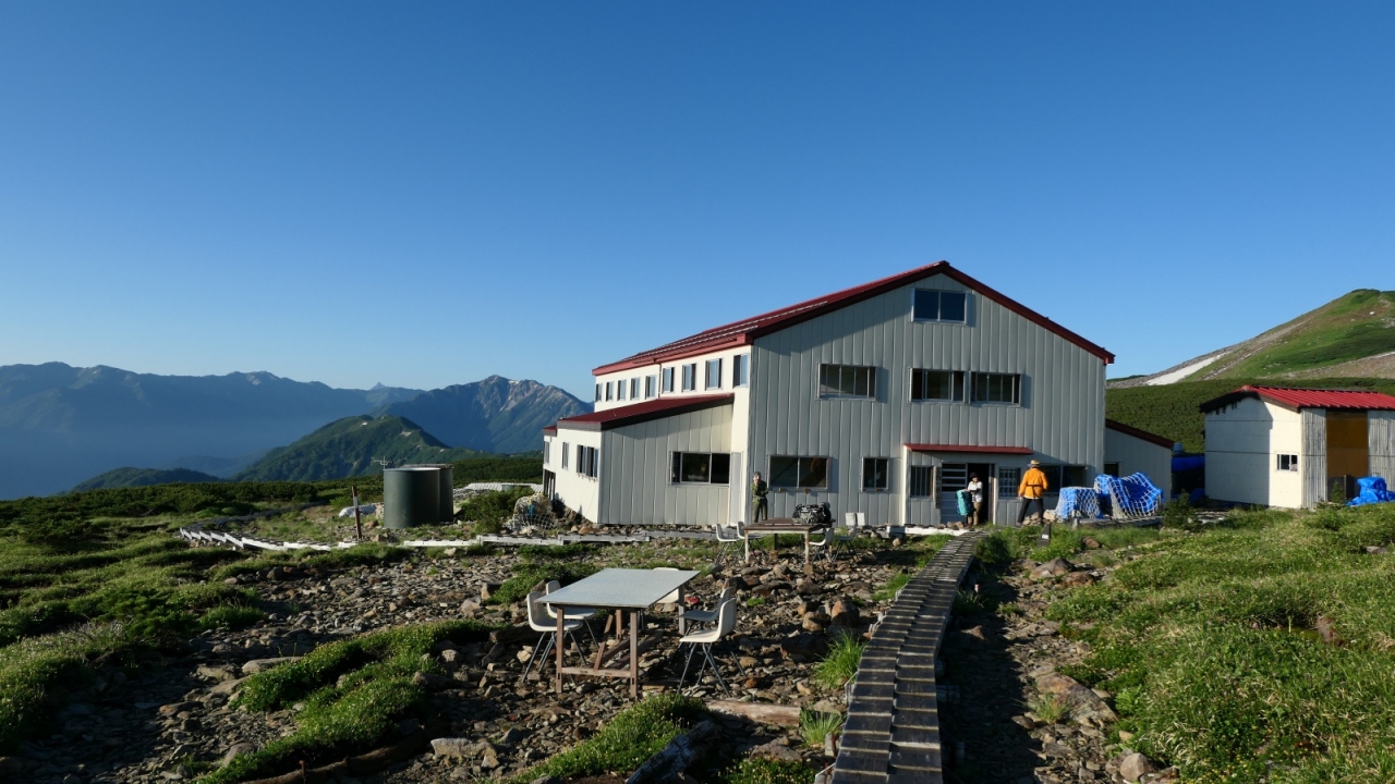 室堂平から5時間ほど、山を4つほど越えて(巻いて)到達する不思議な高原台地にポツンとある山小屋です。