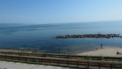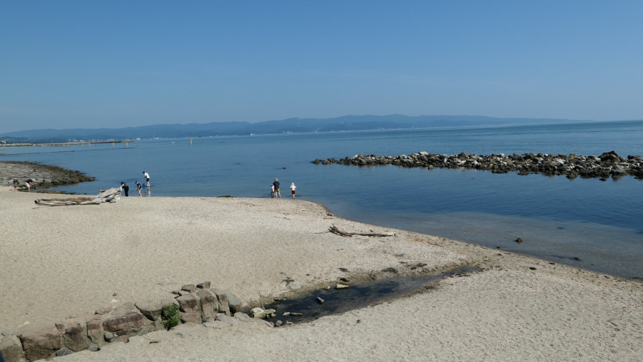 観光ポスターをイメージして行きましたが、空気が澱んでいる夏場はやはりダメです。晴天にも関わらず、海岸からは立山連峰は一切見えませんでした。