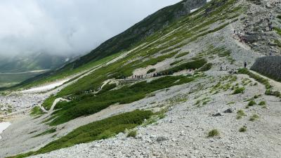 小屋の周辺の高層湿原で百花繚乱を期待していましたが、チングルマ・コイワカガミ・イワイチョウ程度しか見られず少々残念。ただし、ここまでの道中の花畑が素晴らしかったので救われました。