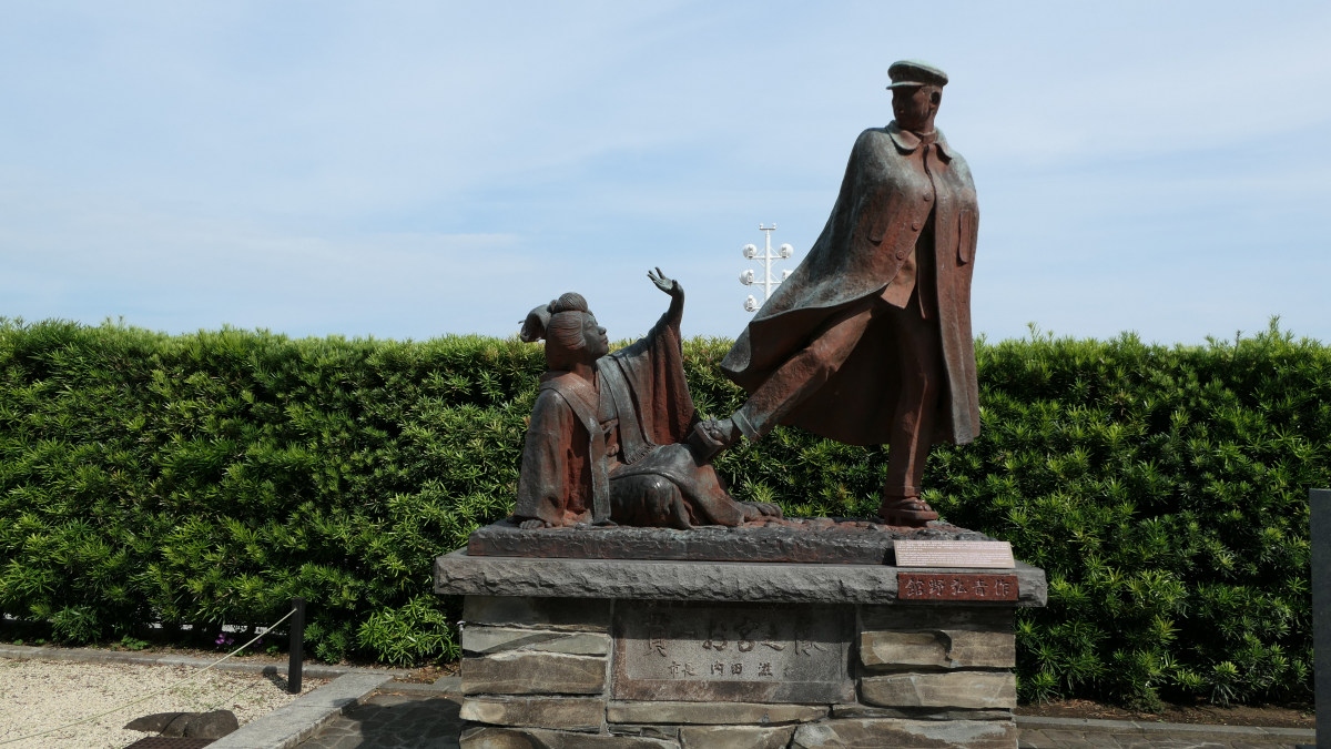 寛一お宮の像は熱海ロータリークラブが創立30周年の記念に、昭和61年1月17日熱海市に贈呈したもの、意外に新しい銅像です。