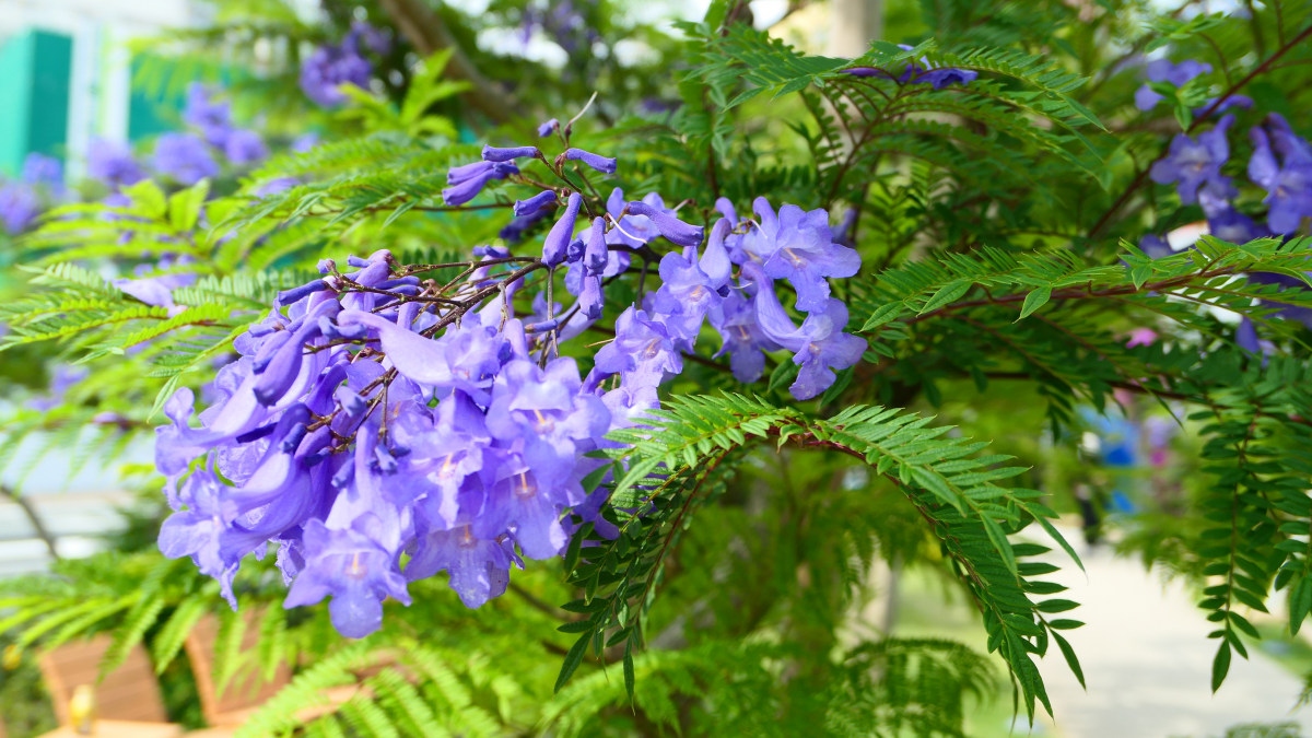 なお、ジャカランダの並木は、お宮緑地の先の親水公園まで続いています。- 旅行時期