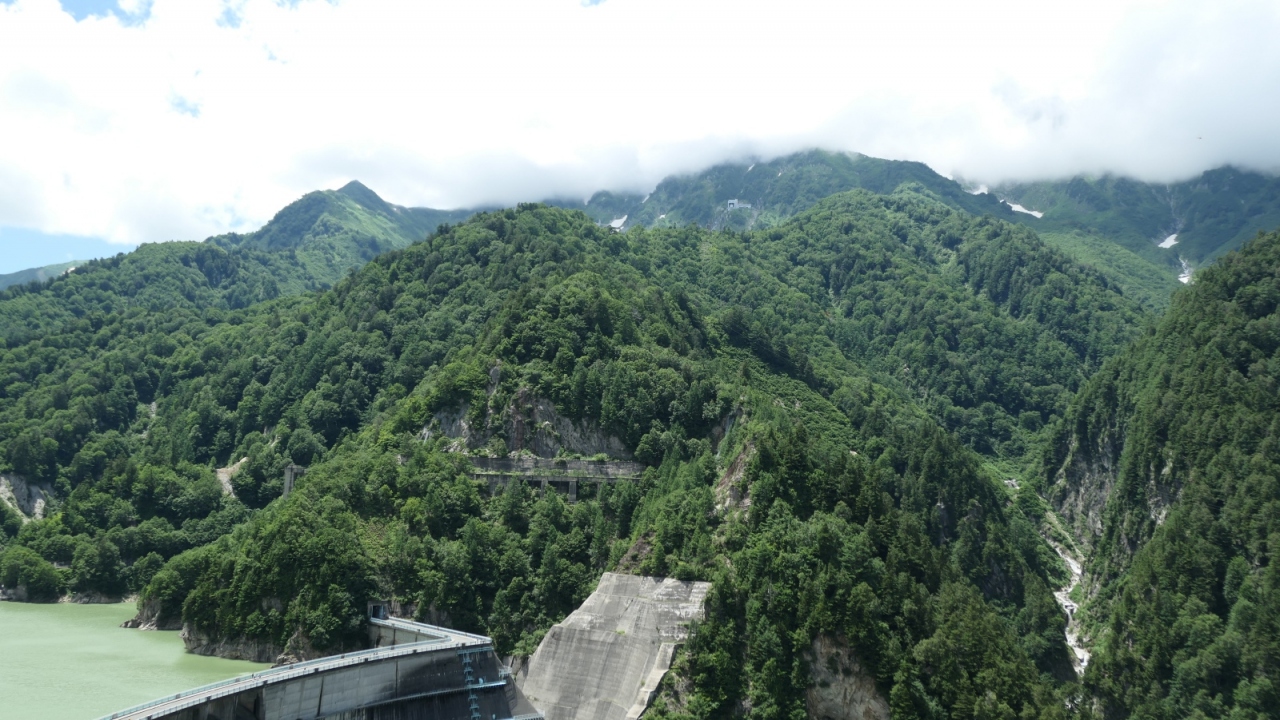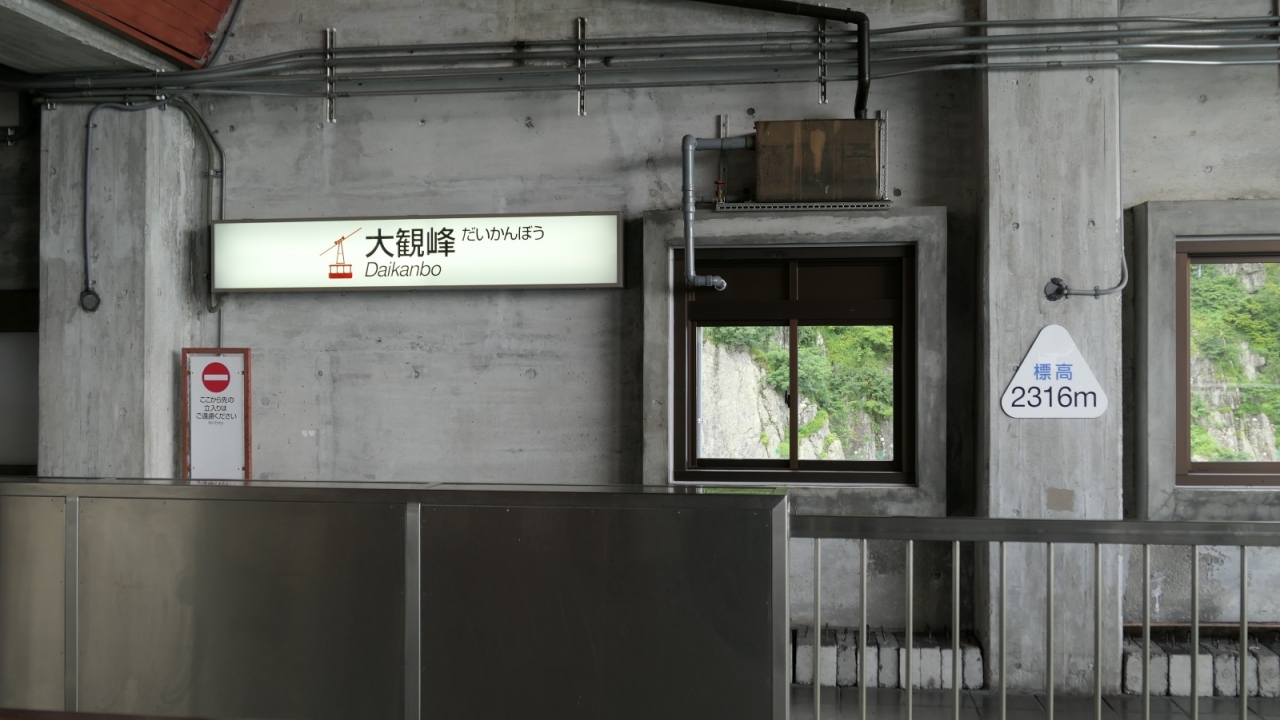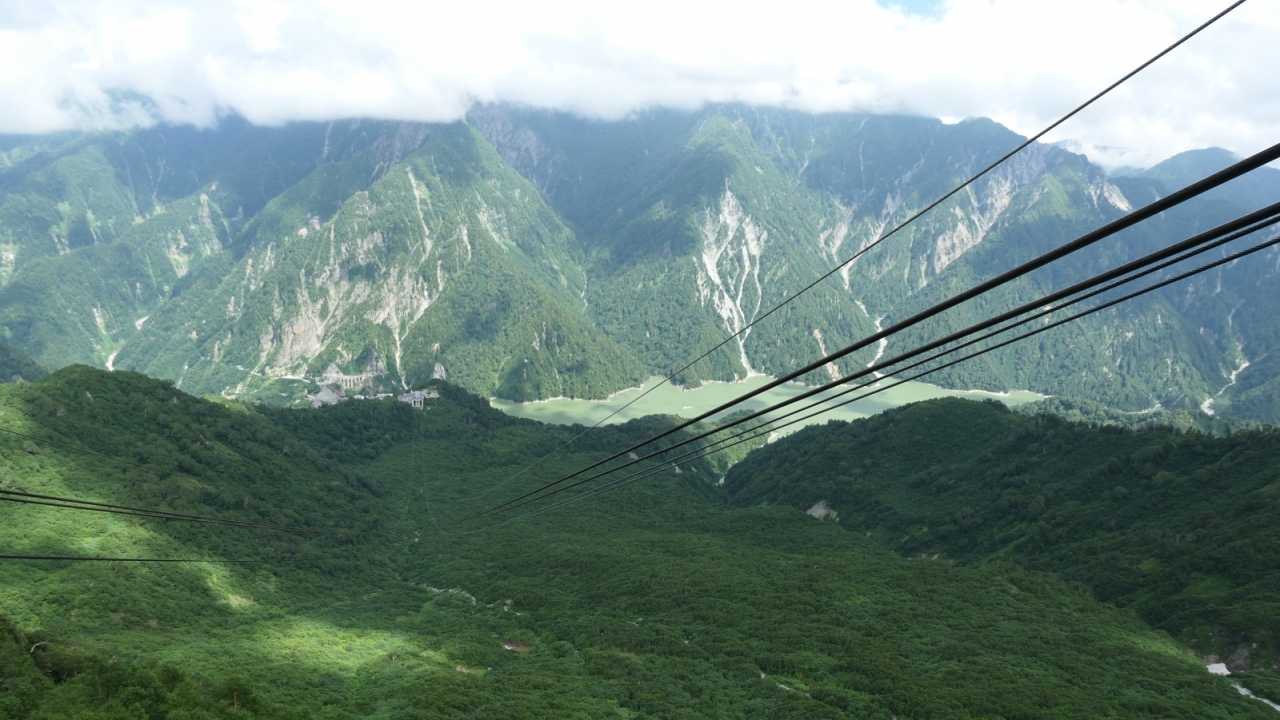 アルペンルートの一つの売りになっている立山ロープウェイ。その発着駅にもなっている場所です。山腹にかじりつくような形の駅舎は、外に出ることができないながら屋上テラスからの眺望はさすがの大展望です。