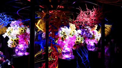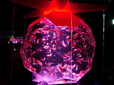 水槽の形や照明の色だけでなく、水・鏡を巧みに利用した見せ方、会場全体のレイアウトなど、非常に凝って作られていて見る者を飽きさせない、その演出は見事です。