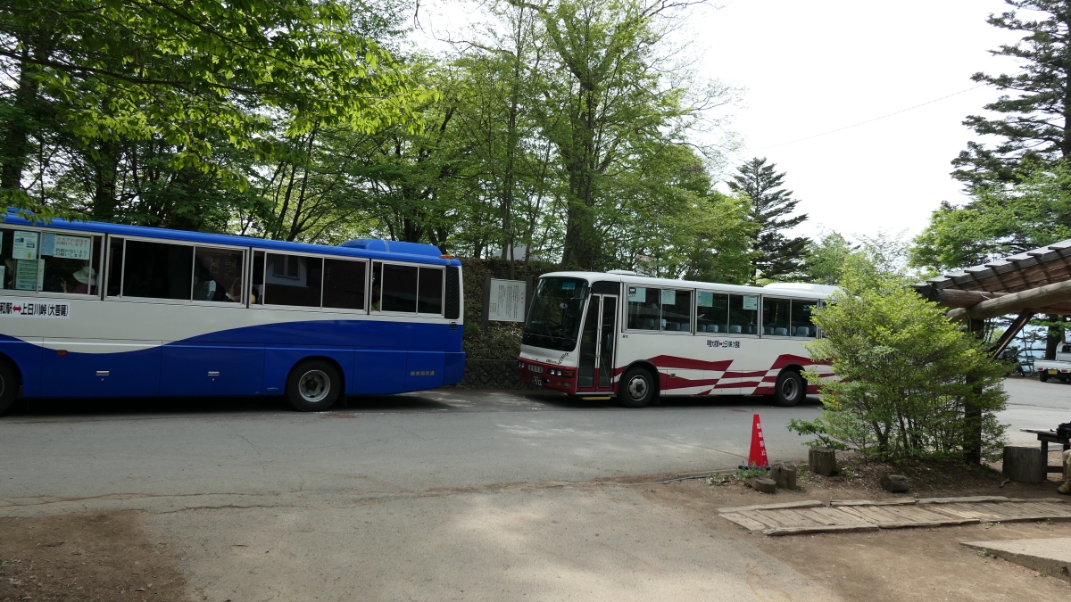 比較的手軽に登れる山なので、週末はバスが混みます。