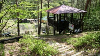 茅ヶ岳への登山口にもなっており、あずまや、ベンチ、記念碑が設置されています。