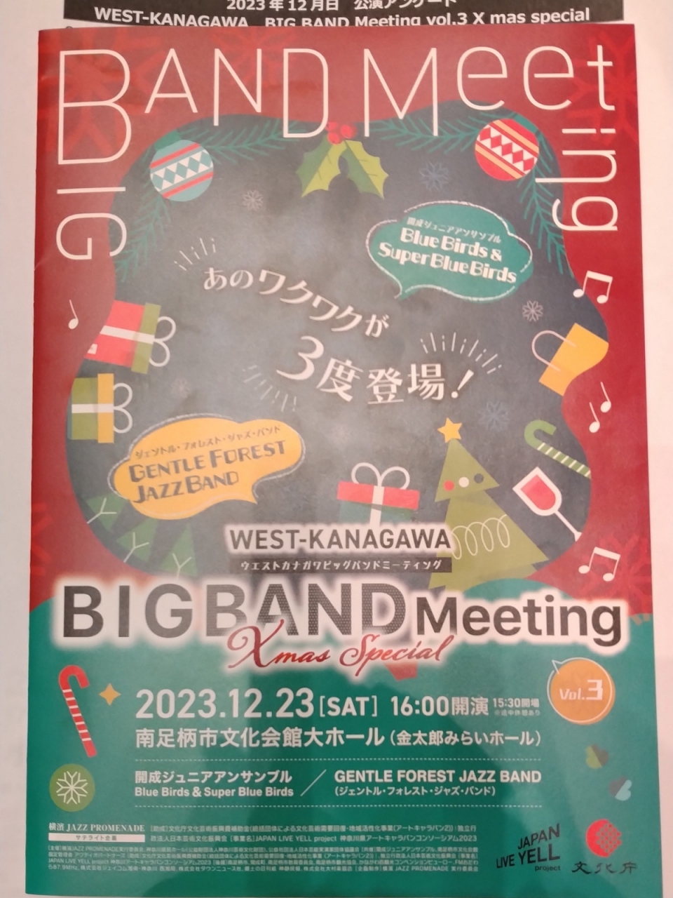 地域の文化推進事業の一環として開催されたコンサートでしたが、地元小中高の児童・生徒たちが見事な演奏を披露して、最後は私の大好きなビッグバンド『Gentle Forest Jazz Band』と共演して大変な盛り上がりを見せました。