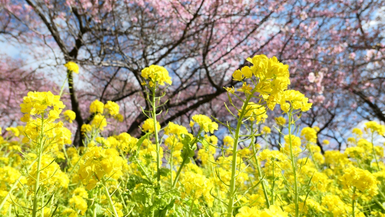 河津桜と菜の花も見事ですが、丘陵斜面を利用した眺望も爽快そのものです。