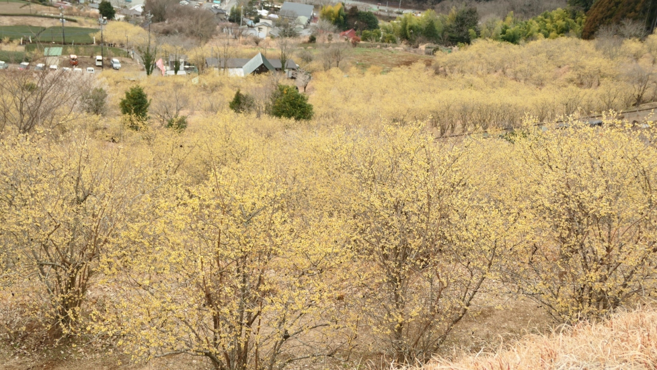 松田町寄地区にある大きな植林地です。山の斜面一面におよそ2万本のロウバイが植えられているそう。