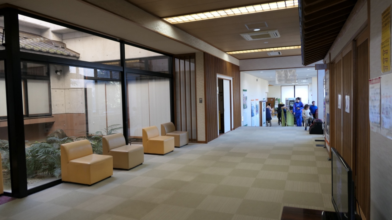 風呂上がりに寛げる大広間もあり、ザックの中身を広げてパッキングしなおすにも便利。空腹ならレストランも併設されています。