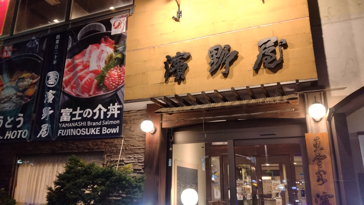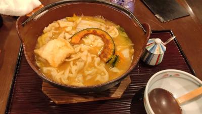 1Fの食事処ですが、メニューを見るとしっかり食事もできる品ぞろえ。実際、ここのほうとうは麵がちぢれておりモチモチ、具だくさんで非常に美味です。- 旅行時期