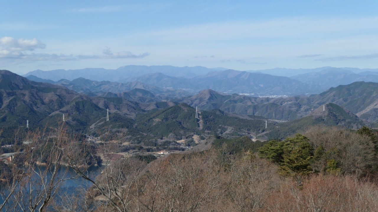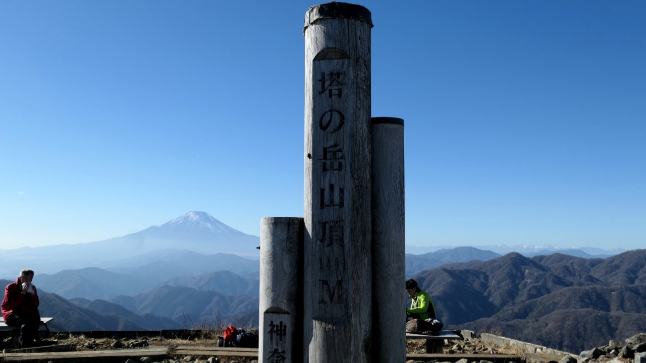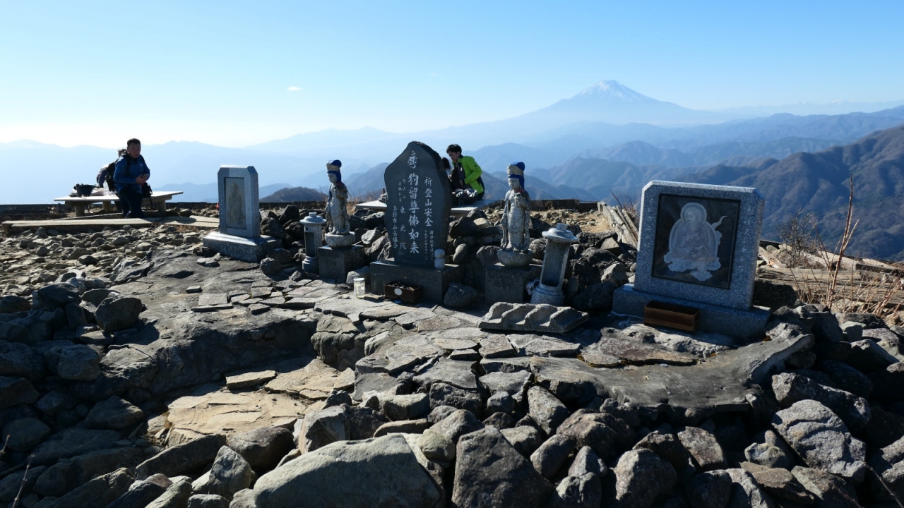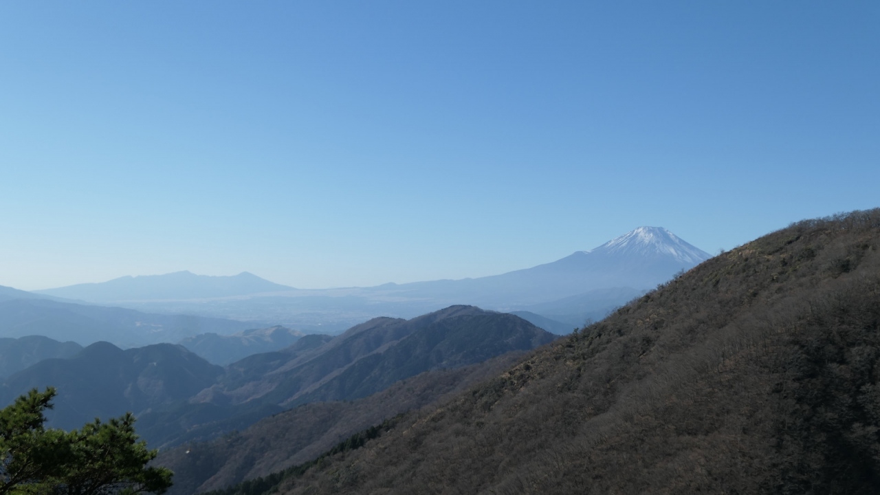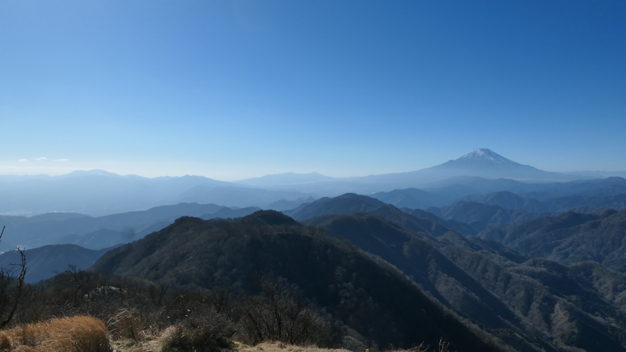 谷峨駅からは1.5~2時間程度で登ることができ、その割に山頂からの富士山はすそ野までしっかり見ることができるほか、丹沢湖周辺の眺望も見事。南側には相模湾の広がりを遠望することができます。