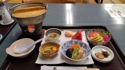 温泉はややぬめりのある源泉かけ流しで、少々熱めのお湯を楽しみました。