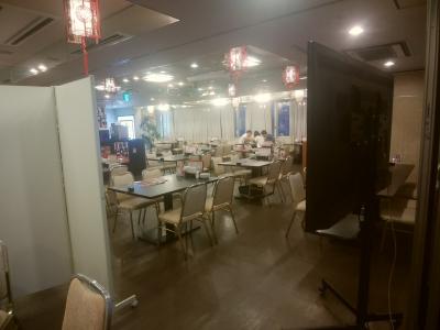 店内明るくそこそこ広いのは良いのですが、大きな宴会場にテーブルを設営した・・・といった感じで、入った途端ちょっとした違和感を覚えます。