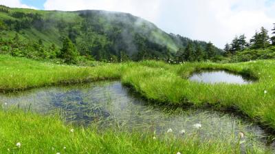高層湿原が広がり、数多くの高山植物が咲き乱れています。