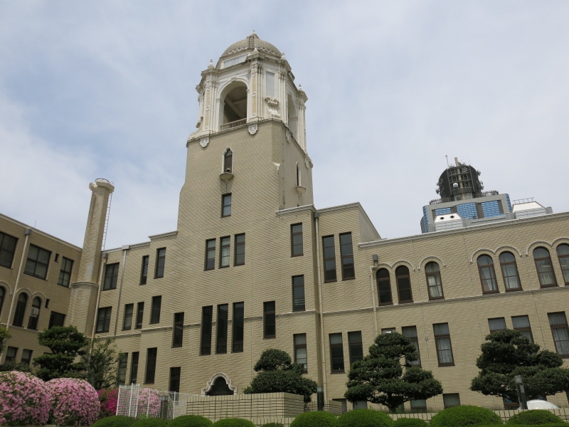 イスラム風ドーム戴く塔屋をはじめ、建物の全体に施されたスペイン風の意匠が特徴的で、国登録有形文化財にも指定されています。