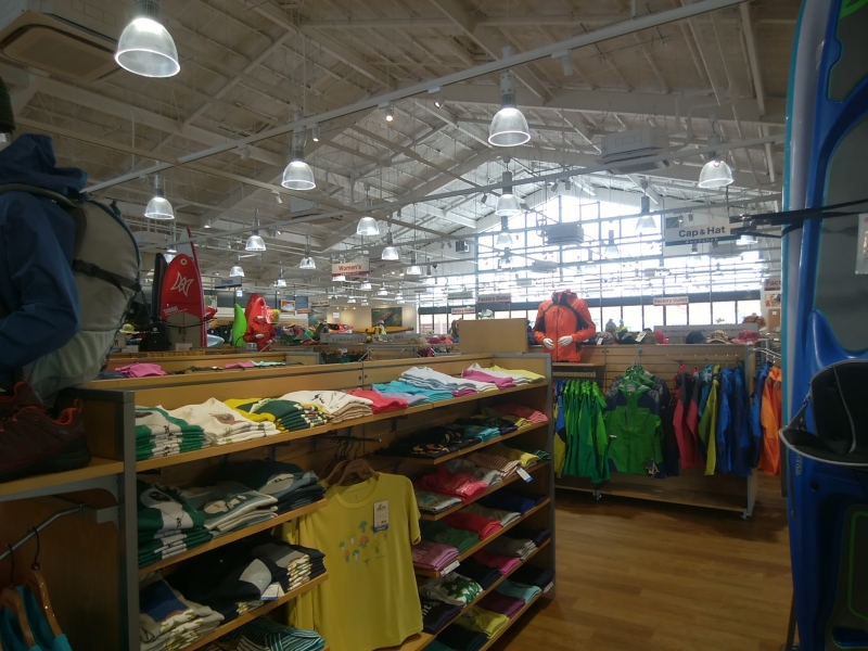 カヌー・カヤックなどのウォーターアクティビティを体感できる店舗としてオープンしました。店の外にはカヤックが体験できるコーナーがあります。