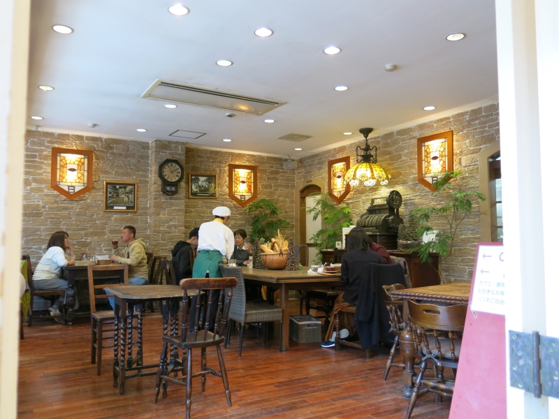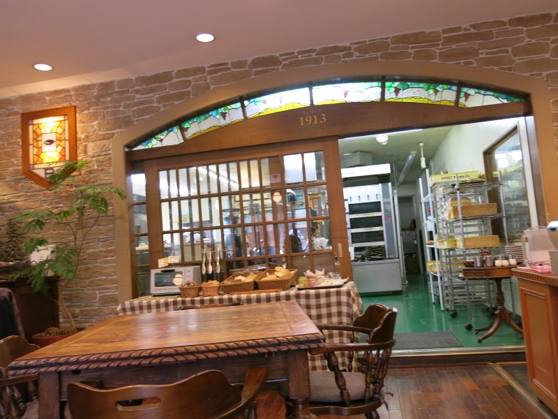 縄手通りにある老舗ベーカリー・・・とのことですが、店内の大半はカフェスペースで、パン売り場が異常に狭い!ゆっくりパンを選ぶこともできないほど狭い!焼きあがったパンを運んで来ても、客がいると棚まで到達できないほど狭い!