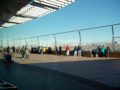 広いデッキにベンチが点在し、目の前は滑走路。航空機ファンのみならず、老若男女多くの人たちが見物に来ています。