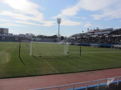 この競技場の特色は、観客席とピッチの近さ。ゴール裏などは本当に間近でプレーを見ることができます(ボールも良く飛び込んできます)。